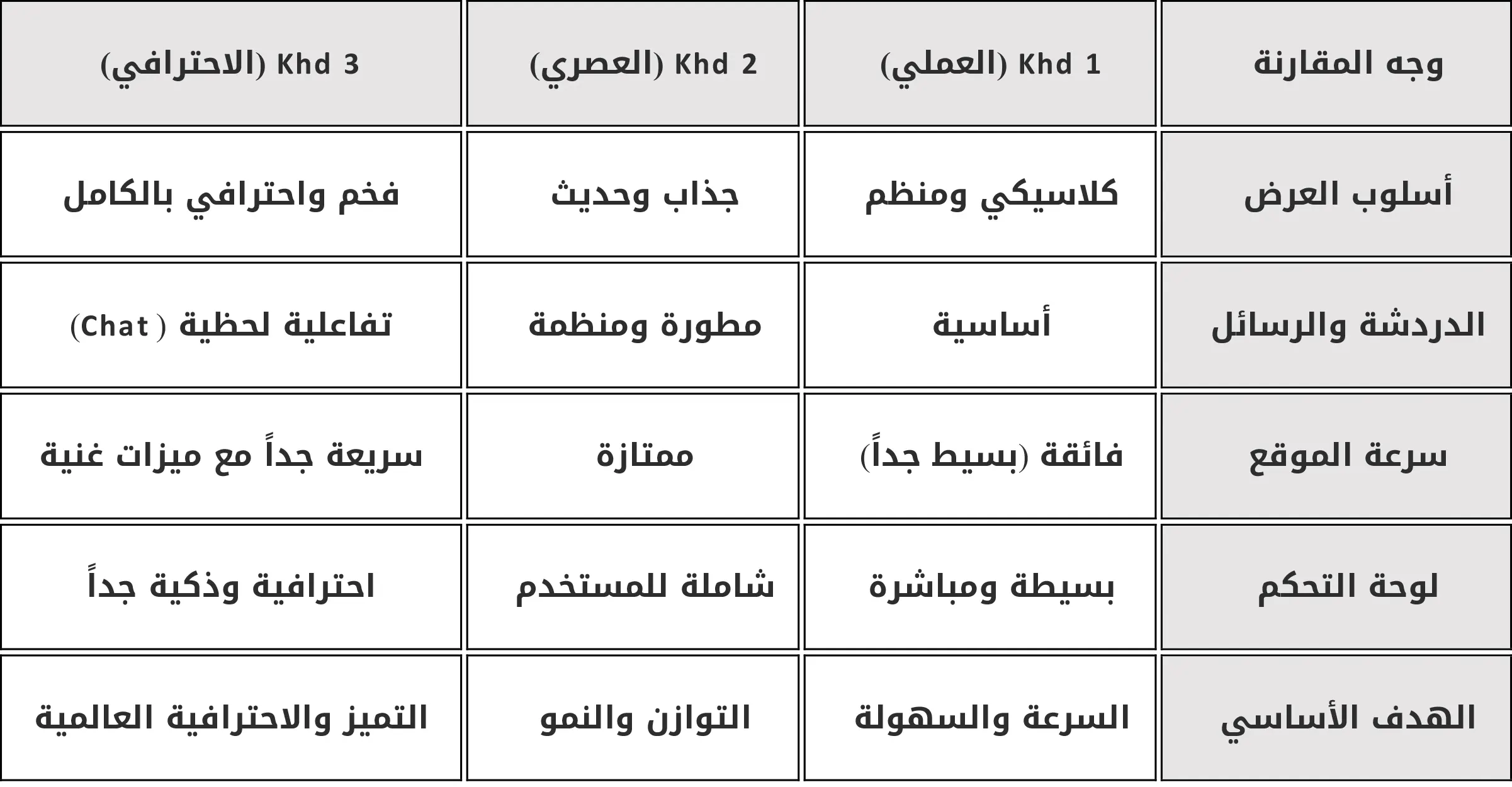 إليك أبرز المميزات والفروقات بين الإصدارات الثلاثة (Khd 1, Khd 2, Khd 3):