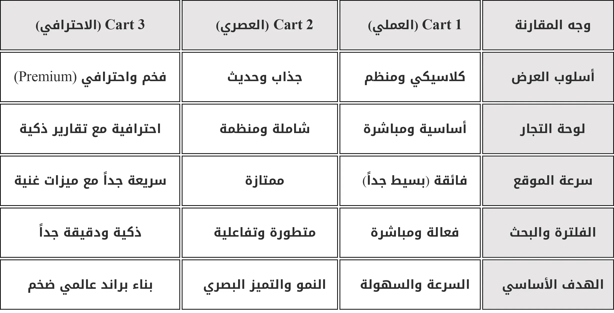 إليك أبرز المميزات والفروقات بين الإصدارات الثلاثة (Cart 1, Cart 2, Cart 3):